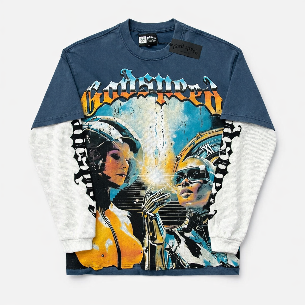Le Godspeed Fake 2 Pieces Long-sleeves Heavy Washed Cotton Round Neck est idéal pour les saisons intermédiaires et les looks casual premium inspirés des tendances actuelles.